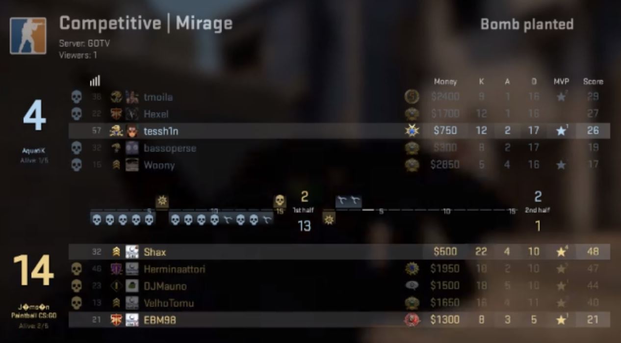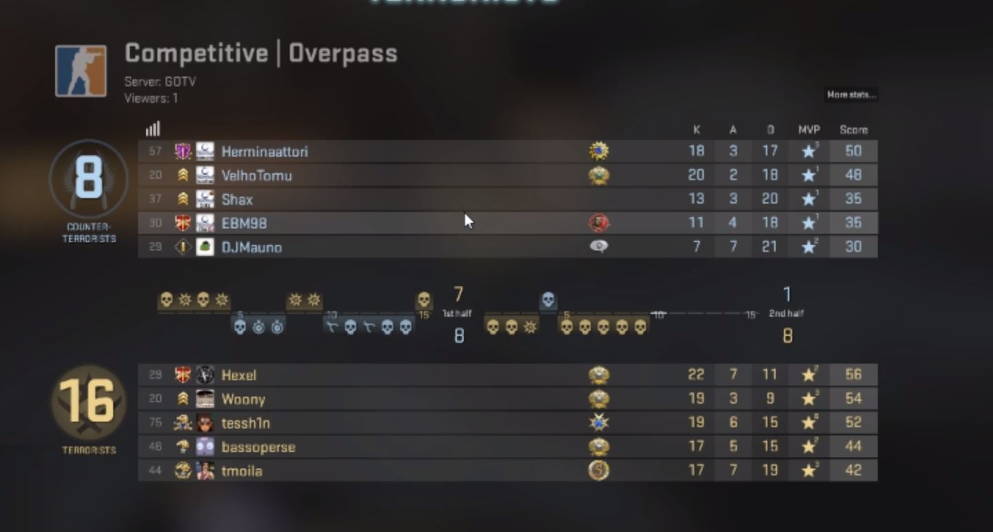 “Onnistuttiin resetoimaan päät Miragen jälkeen ja pelattiin omaa peliä. Vastustaja oli hyvä, mutta Overpass oli kyllä koko ajan hallinassa. Kiitokset vastustajalle hyvästä pelistä!” kertoo AquatiK:n Masi “tessh1n” Lehtinen.